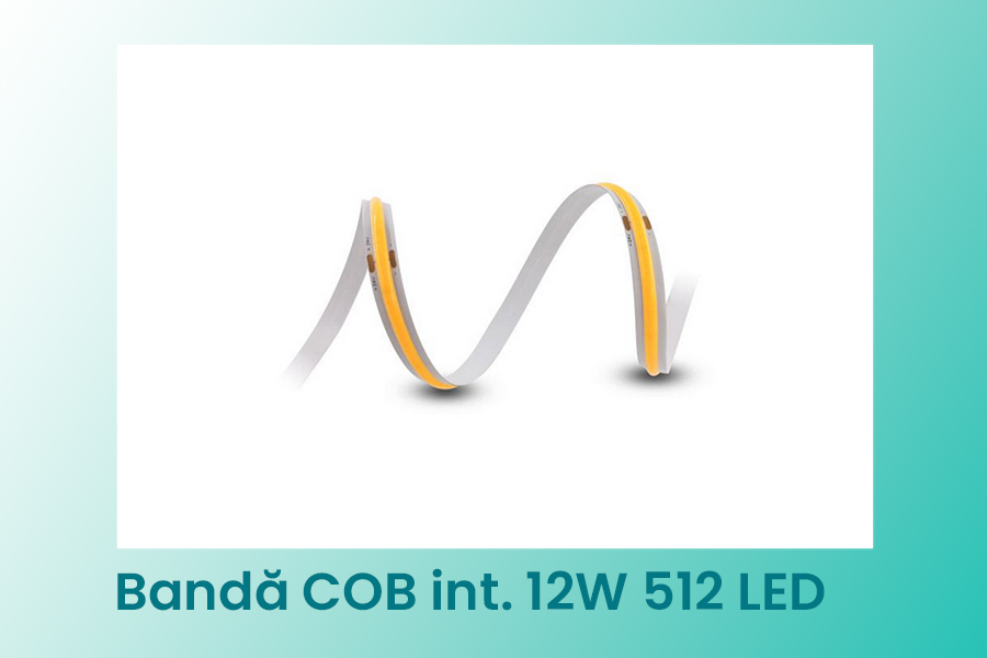 Banda LED COB 12W/m 512 LED/m este o banda LED flexibila cu iluminare continua si uniforma, fara puncte LED vizibile, recomandata pentru aplicatii de interior unde aspectul luminii este important. Tehnologia COB (Chip On Board) integreaza un numar mare de LED-uri direct pe suport, oferind o linie de lumina curata si omogena.