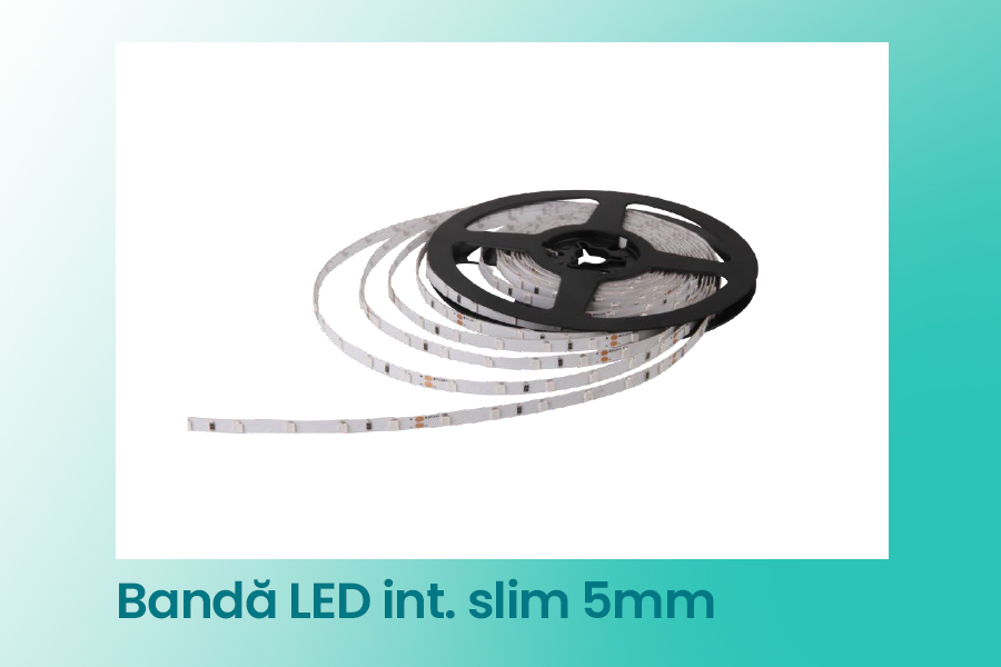 Se livrează în role de 5 metri și este destinată utilizării la interior (IP20). Poate fi utilizată pentru iluminare liniară, proiecte decorative și aplicații publicitare care necesită o bandă LED îngustă și ușor de montat.