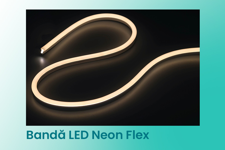 Banda LED Neon Flex RGB 8×17 mm combină designul flexibil și aspectul elegant al neonului clasic cu versatilitatea tehnologiei LED multicolor.