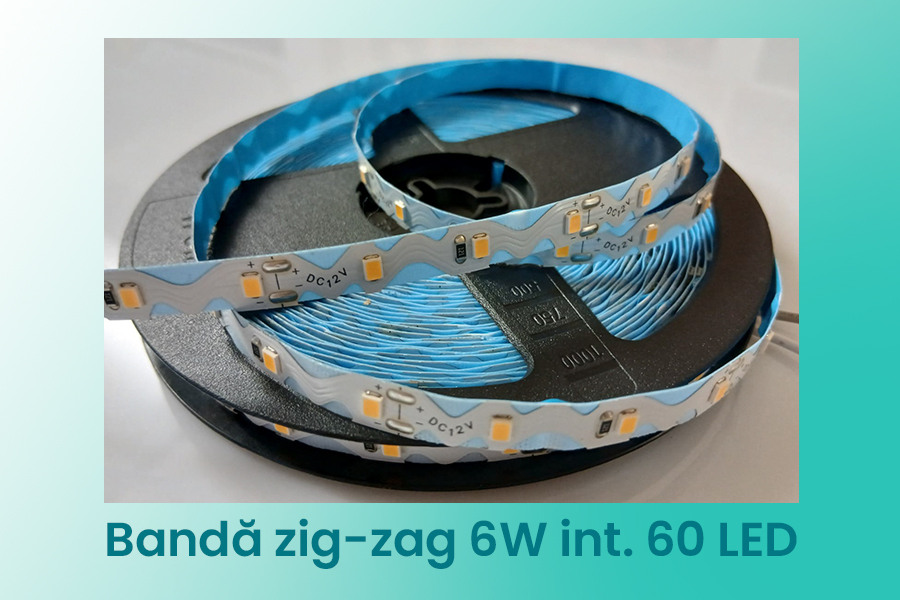 Bandă LED Zig-Zag 6W interior 60 LED/m IP20 – flexibilitate maximă pentru forme curbe