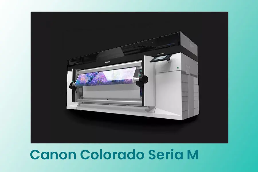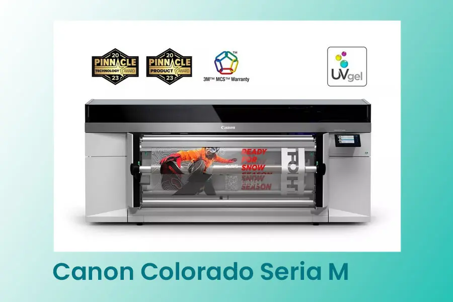 Canon Colorado M-Series este o imprimantă UVgel roll-to-roll, complet modulară, gândită pentru producție de grafică de format mare (semnalistică, aplicații promo, branding).