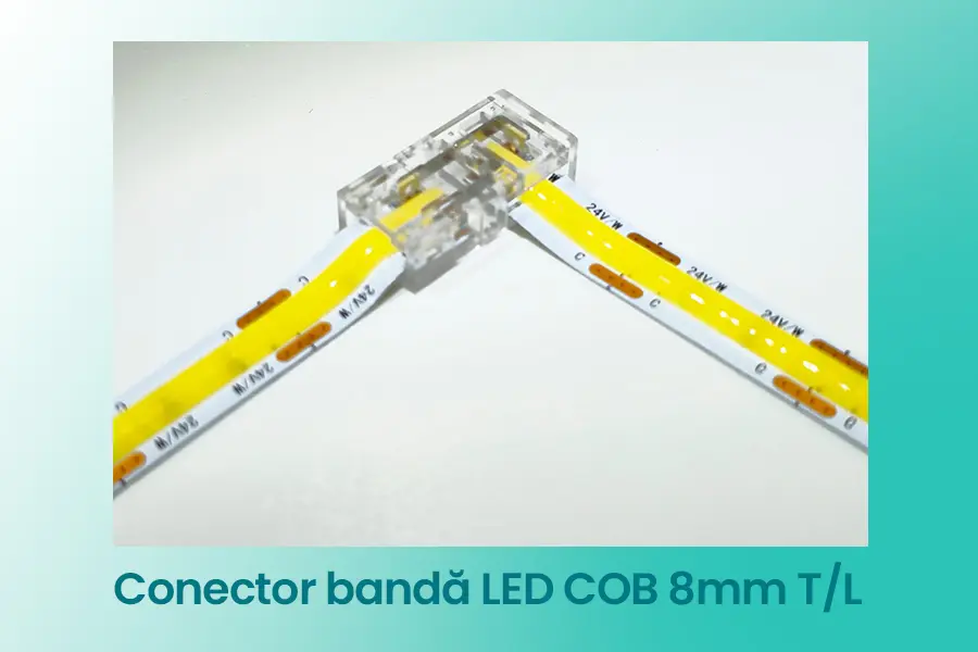 Conectorii pentru bandă LED COB 8mm sunt accesorii utilizate pentru conectarea rapidă a benzilor LED COB cu lățime de 8 mm, fără lipire. Sunt recomandați pentru montaj, prelungire, alimentare sau interconectare în proiecte de iluminare cu benzi LED pentru interior.
