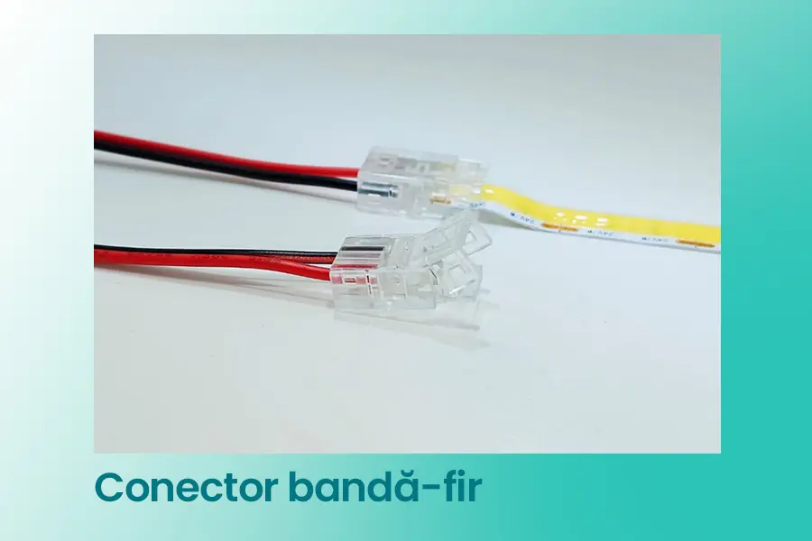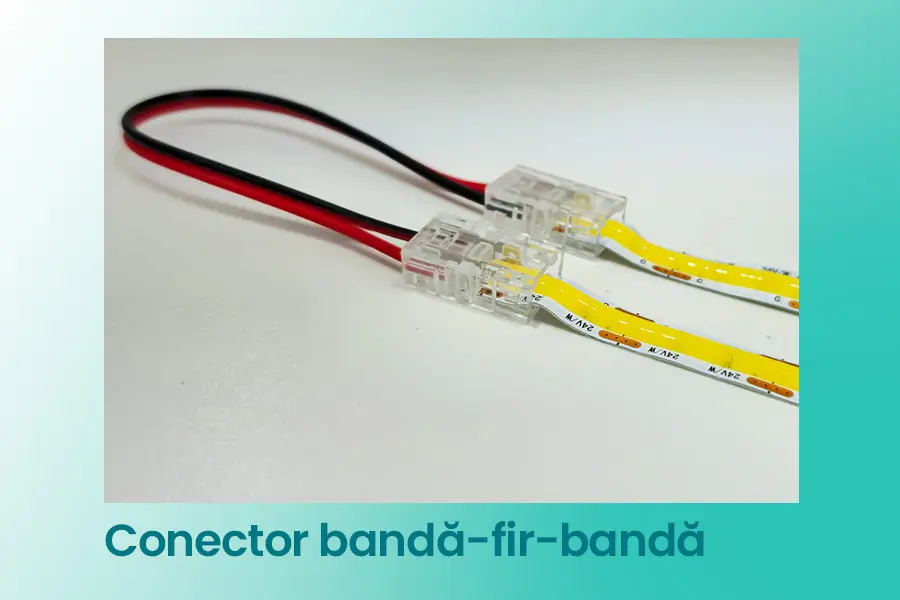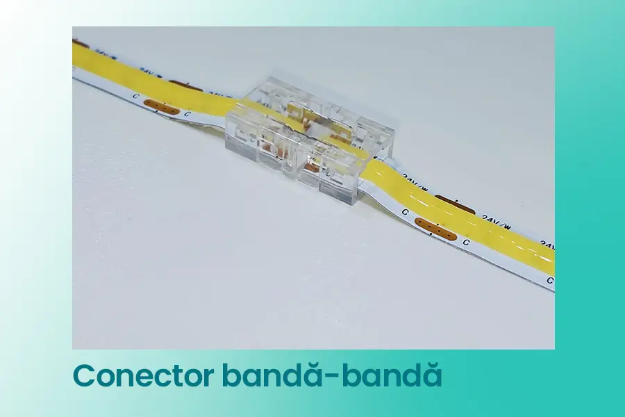 Familia include variante pentru conectare banda-banda, forma T/L, banda-fir 15cm și banda-fir 15cm-banda, oferind flexibilitate în realizarea traseelor de iluminare și în adaptarea montajului la diferite aplicații.