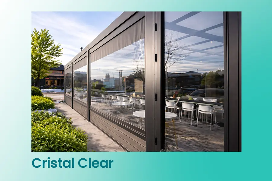Materialul este cunoscut și ca folie cristal sau poliplan transparent și este folosit pentru pereți laterali, rulouri și sisteme de protecție pentru terase, atât în aplicații rezidențiale, cât și horeca.