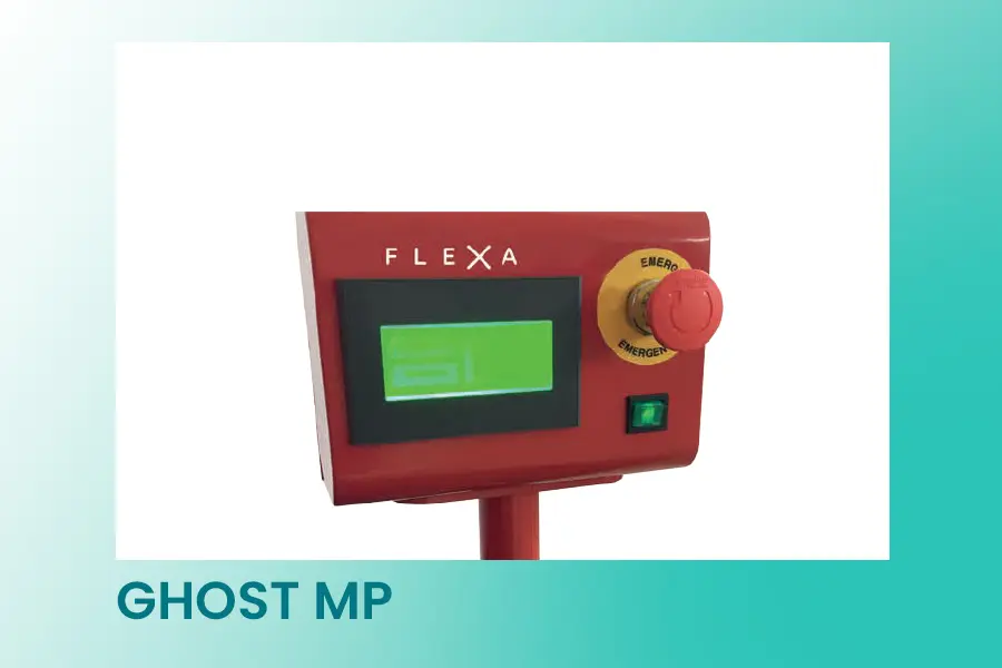 Flexa Ghost MP este un aparat automat de capsat, conceput pentru aplicarea profesională de capse plastic în bannere PVC, mesh și materiale textile utilizate în producția publicitară. Sistemul self-perforating realizează perforarea și montarea capsei într-o singură operațiune, cu comandă la pedală și control electronic.