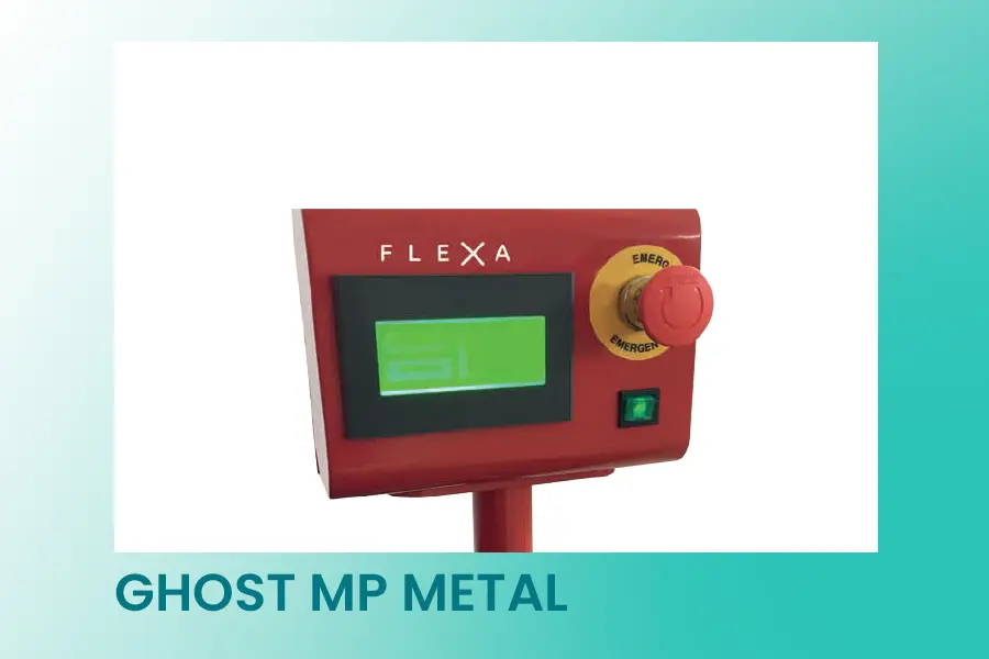Flexa Ghost MP Metal este un aparat automat de capsat destinat aplicării profesionale de capse metalice (oțel nichelat) în bannere PVC, mesh și materiale textile utilizate în producția publicitară. Sistemul self-perforating realizează perforarea materialului și montarea capsei într-o singură operațiune, cu comandă la pedală și control electronic.