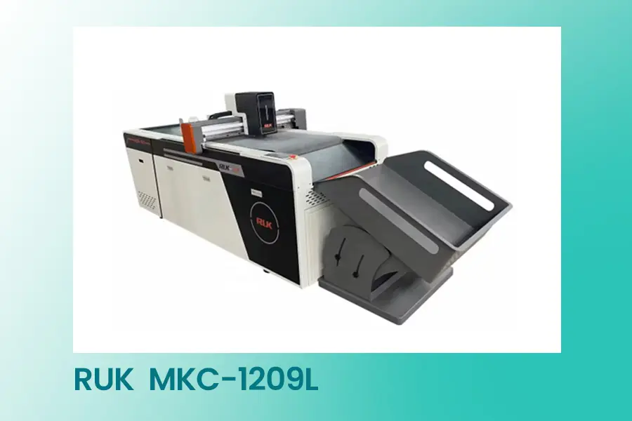 RUK MKC-1209L este o masă de tăiere digitală flatbed pentru producție medie și mare, dedicată ambalajelor, printului și semnalisticii. Platforma extinsă de lucru 1200x900 mm permite prelucrarea eficientă a formatelor mari, iar sistemul vacuum pe conveyor stabilizează materialul pe toată durata tăierii.