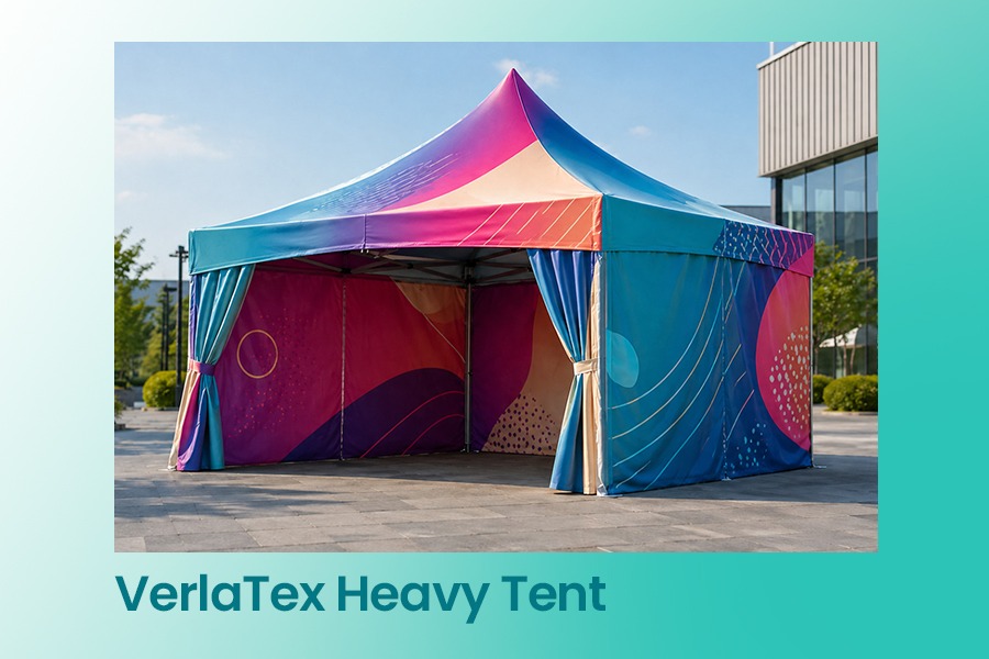 Materialul textil pentru corturi VerlaTex Heavy Tent 280 FR este un poliester imprimabil de 280 g/m², conceput pentru corturi personalizate, structuri pop-up, mobilier outdoor, bean bag-uri și perne lounge.