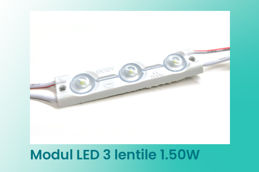 Modul LED de mare intensitate, cu 3 lentile special concepute pentru distribuția eficientă a luminii, ideal pentru aplicații publicitare de exterior.