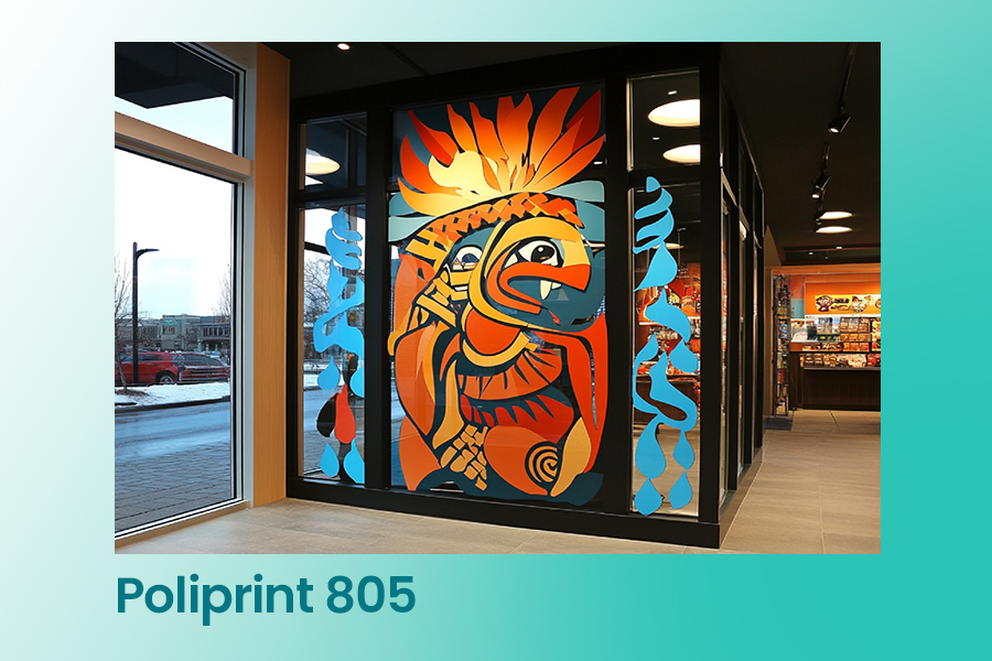PoliPrint 805 este o folie PVC monomerică albă mată, 80 microni, compatibilă cu print digital eco-solvent, solvent, UV și Latex, pentru aplicații indoor și outdoor pe termen scurt până la mediu.