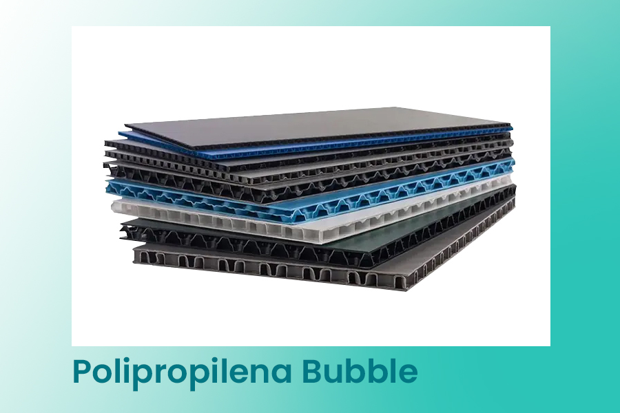 Plăcile din polipropilenă Bubble sunt realizate dintr-un copolimer extrudat cu structură alveolară tip „bubble”, care oferă rigiditate excelentă, greutate redusă și stabilitate dimensională superioară. Structura lor inovatoare – formată din două straturi externe și un nucleu interior tip bule de aer – asigură aceeași performanță ca plăcile PVC, dar cu un impact ecologic mult mai mic.